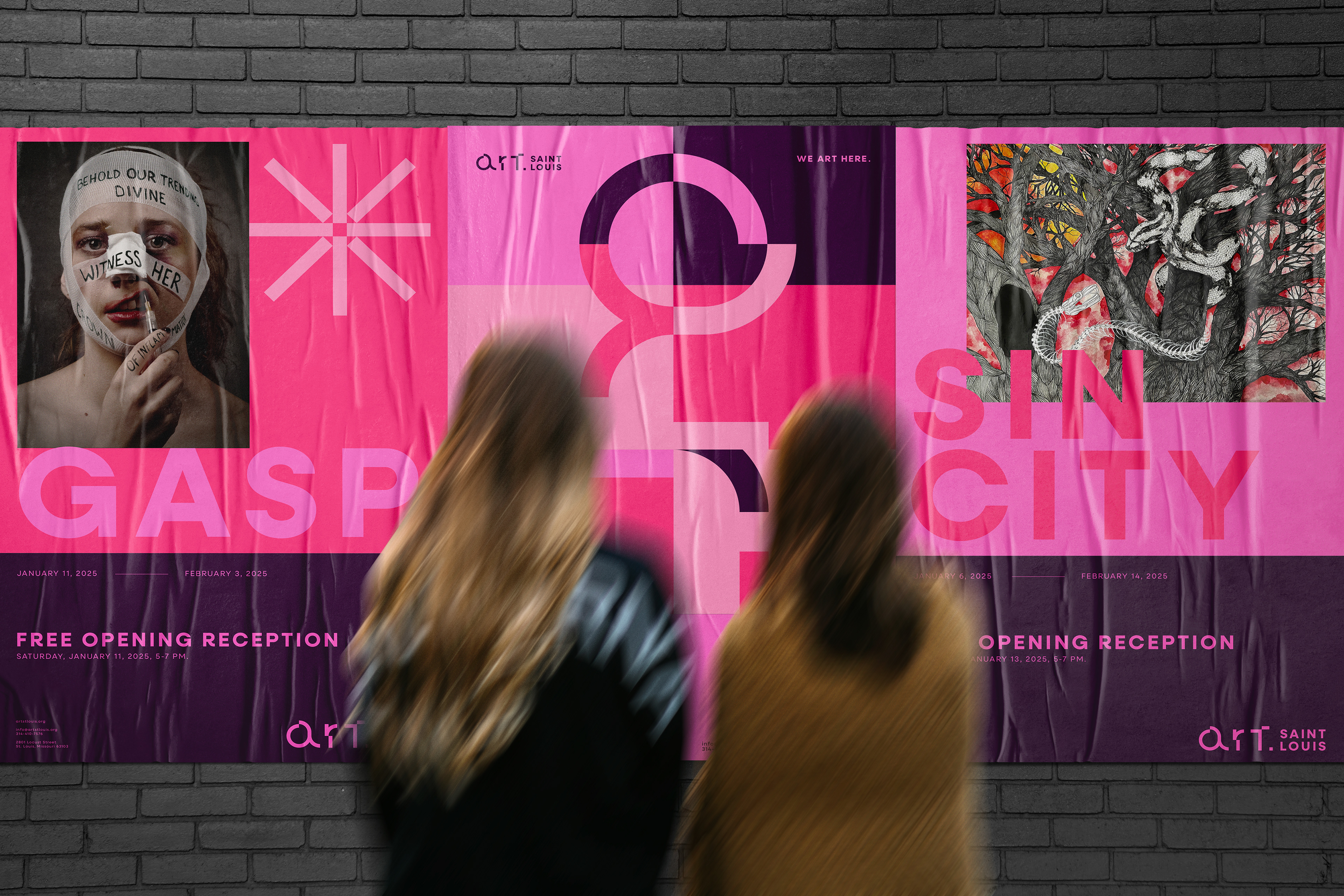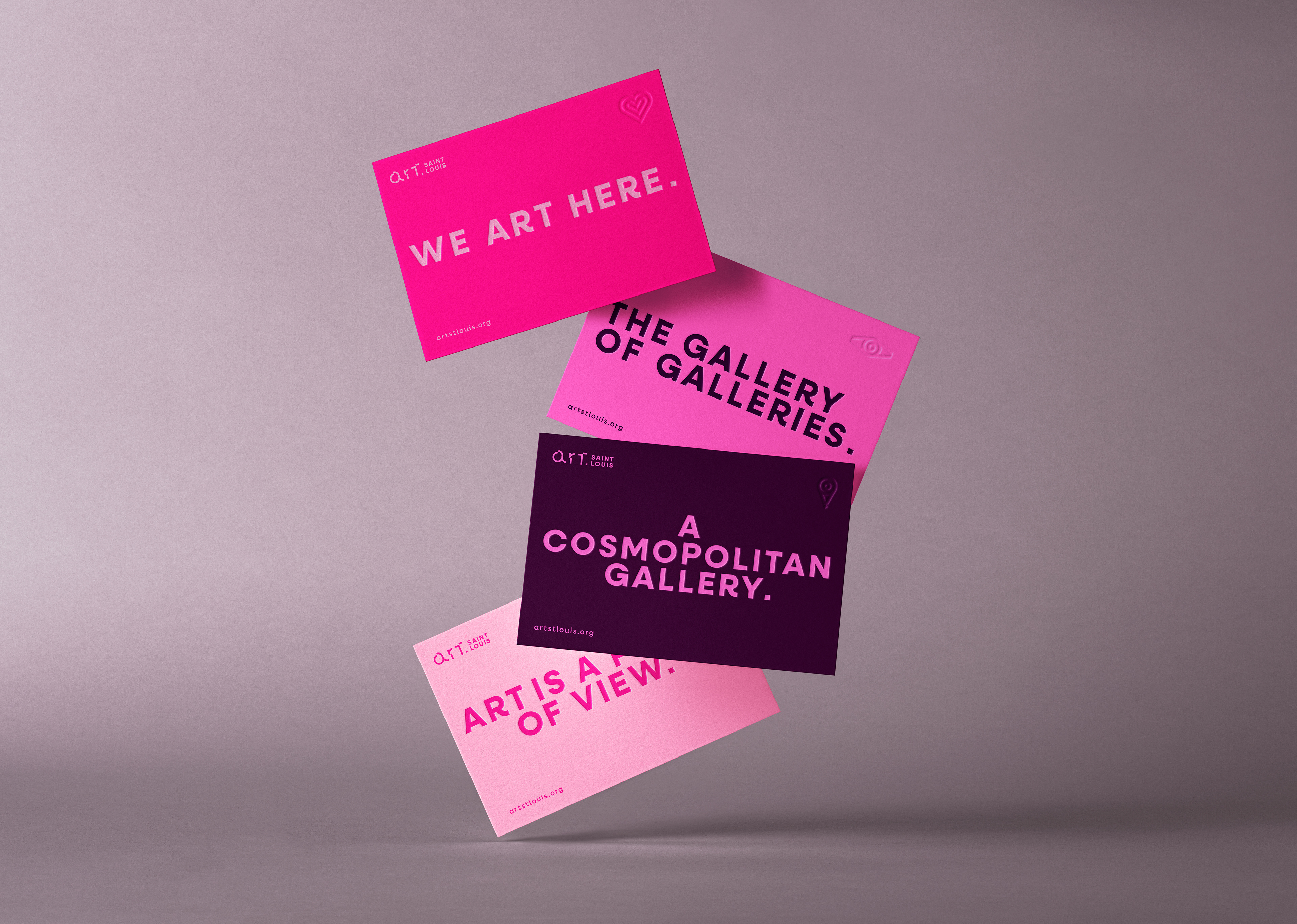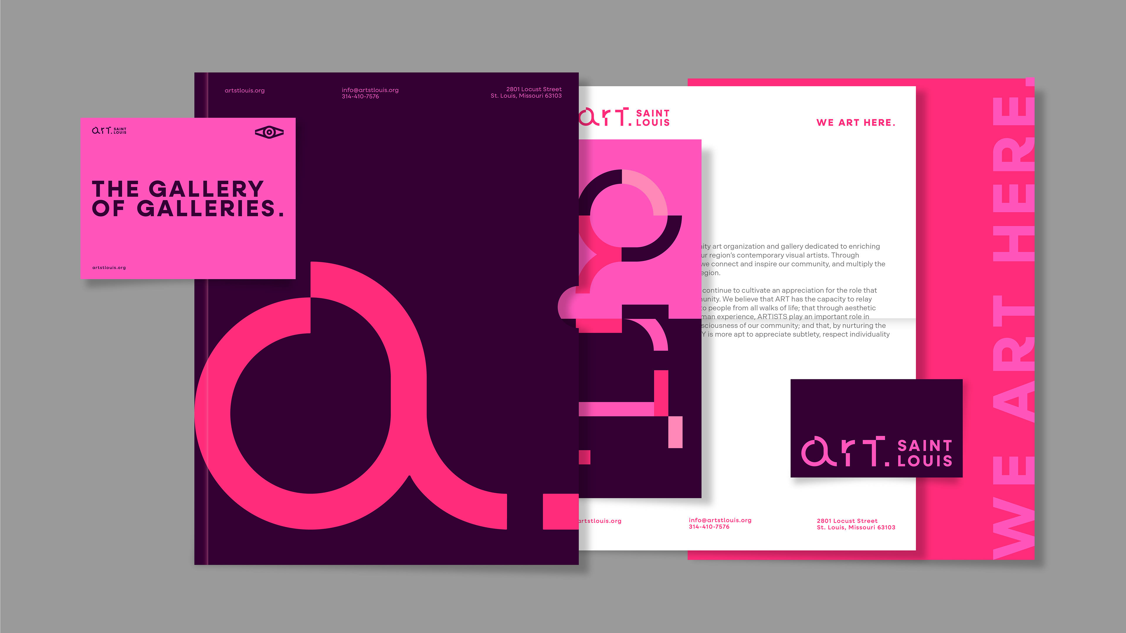 Comprehensive visual identity redesign for Art Saint Louis Gallery, including the development of brand tone and messaging, as well as the creation of a cohesive graphic system. The project also encompassed the design of the new website and the development of a structured content strategy for social media.