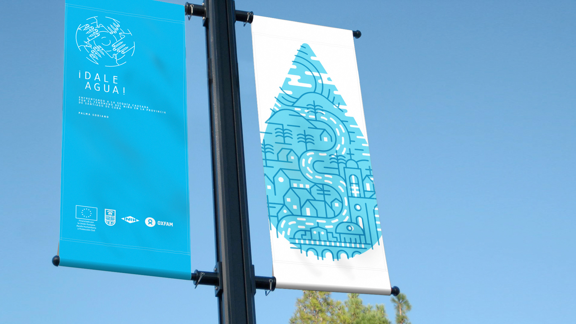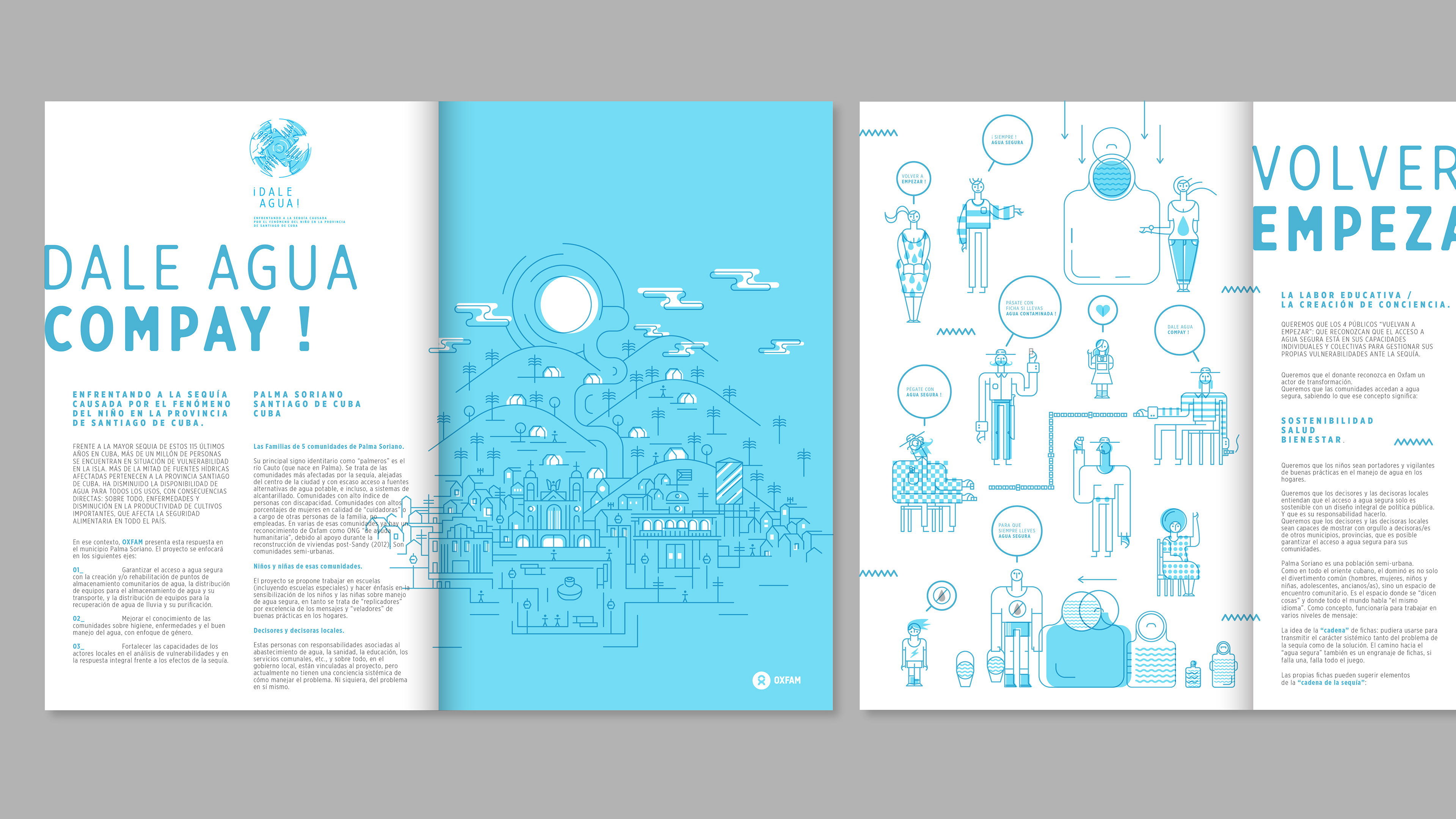 Concept and content design for the “Dale Agua” campaign, in collaboration with the UK-based NGO OXFAM, aimed at addressing severe drought conditions and raising awareness in eastern Cuba. Design of a system of visual identities, graphic rollout, communication actions, and promotional applications. *The communication concept uses Cuban domino culture as a metaphor — a highly popular game on the island, traditionally played in teams.