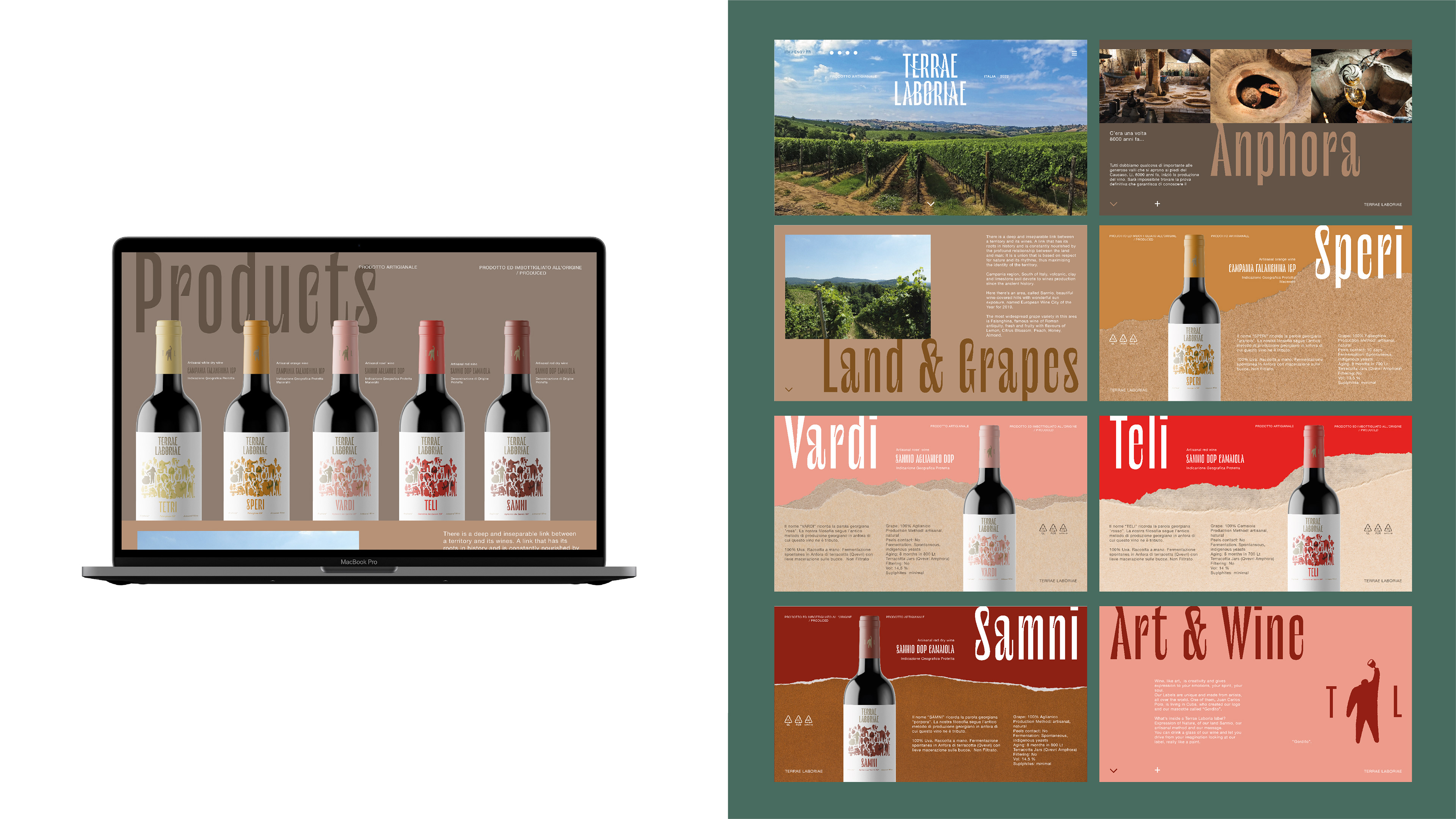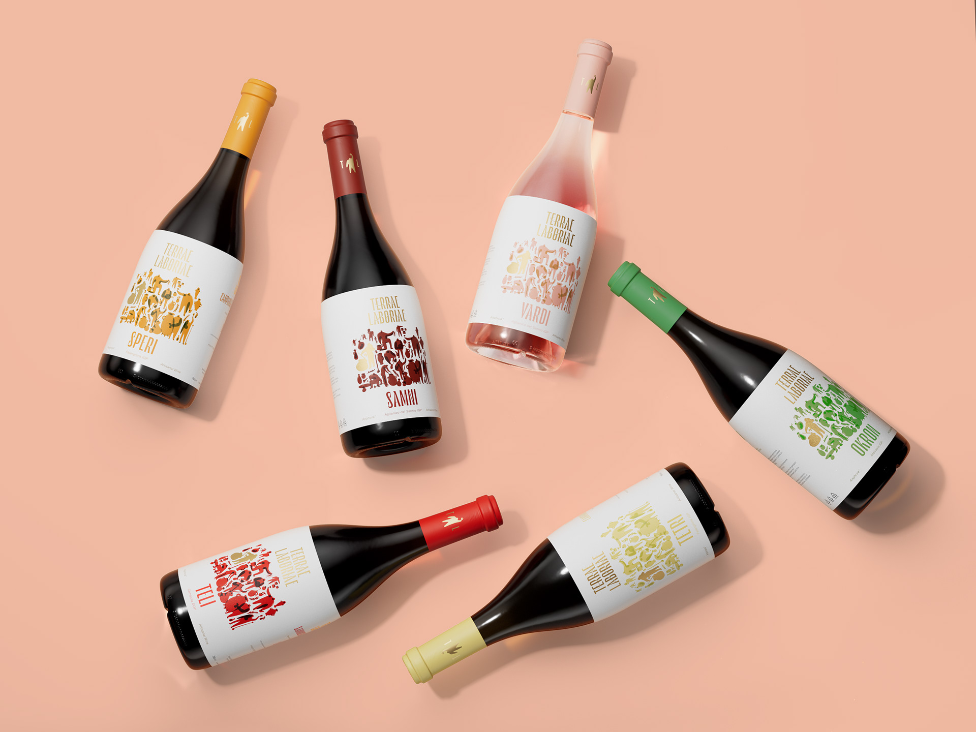 Visual identity design and illustrated labels for Terrae Laboriae, an artisanal wine with an Italian designation of origin, crafted using an ancient technique known as “anphora.” The work included the development of the graphic system and the design of the commercial website.